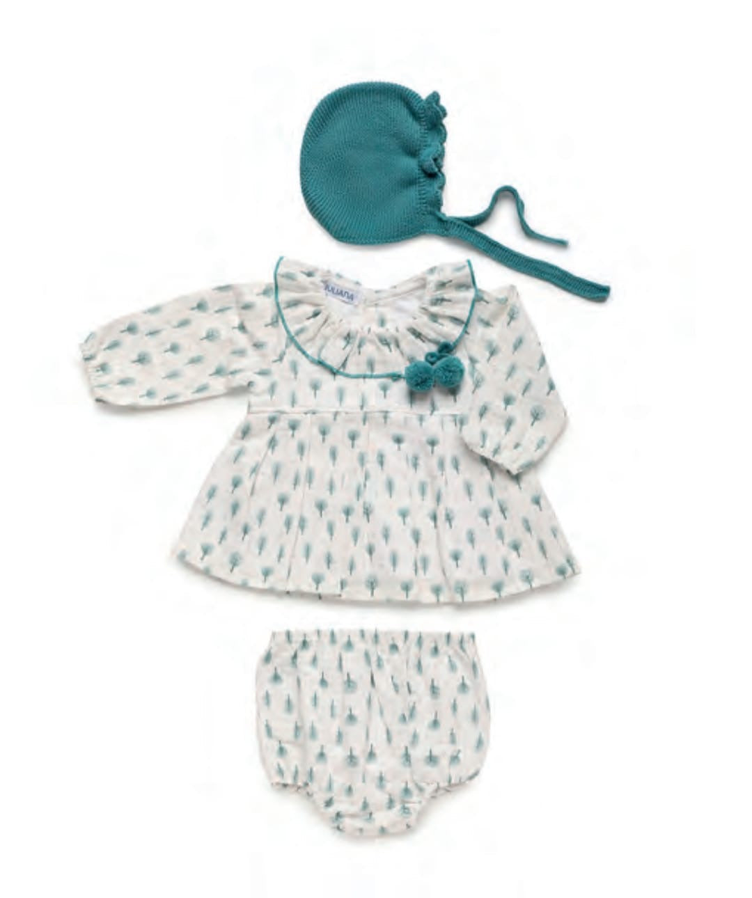 Hermoso Jesusito con braga y gorro de lino de algodón diseño de árboles de nuestra marca española juliana