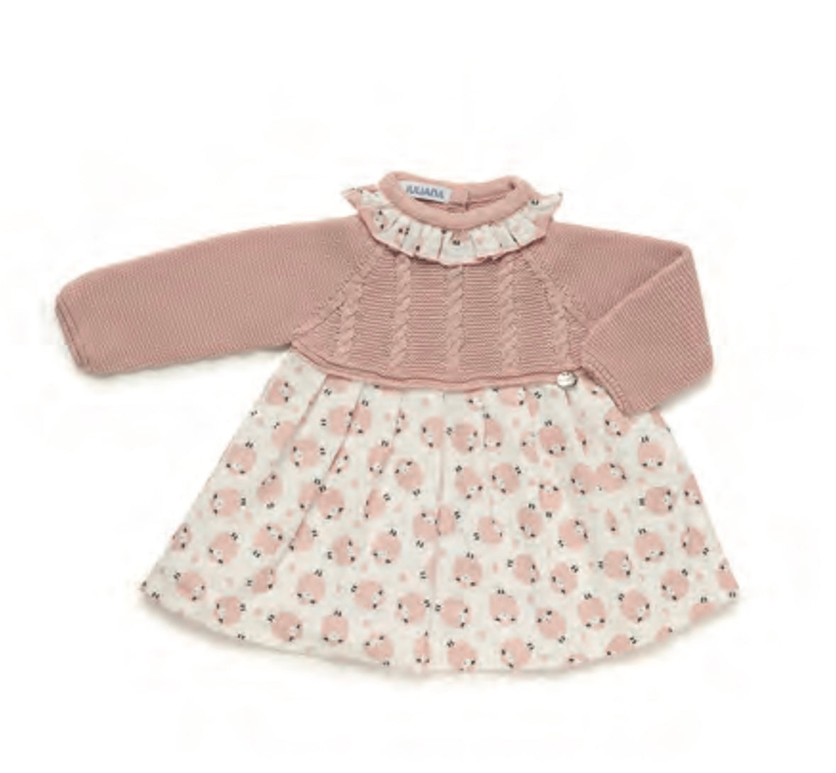Hermoso Jesusito con Braga y gorro de punto color palo de rosa tela lino de flores de nuestra marca española Juliana