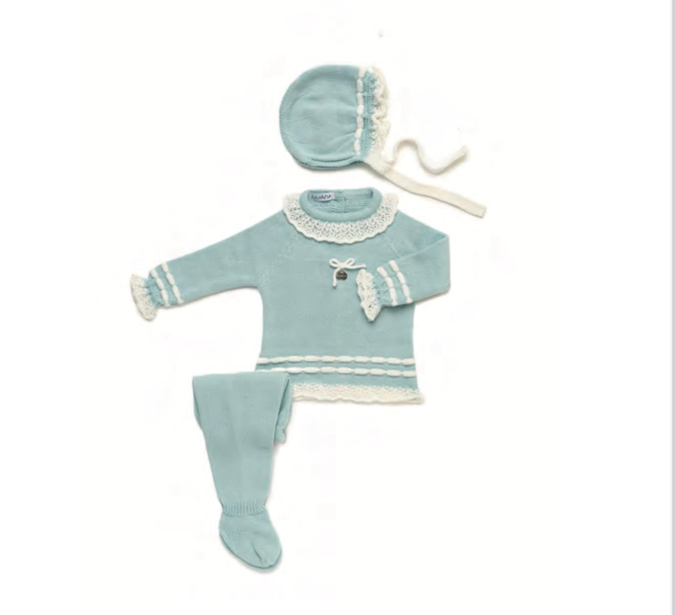 Conjunto de tres piezas para recién nacidos de la marca española Juliana